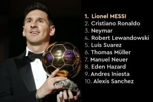 2015年金球奖前十:梅西第一,C罗第二,内马尔第三