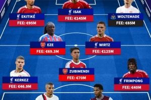 前锋:埃基蒂克(利物浦,9500万)、伊萨克(利物浦,1.45亿)、沃尔特马德(纽卡,8500万)