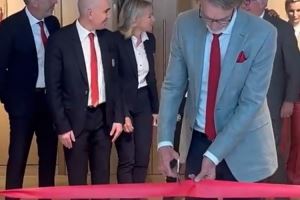 翻新后的曼联卡灵顿基地于今日正式投入使用,在揭幕前,拉特克利夫爵士为训练基地剪彩。